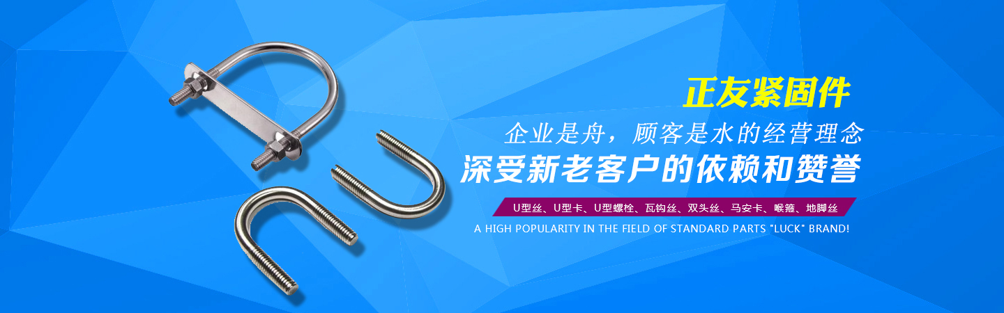 河北U型螺栓廠(chǎng)家選河北正友緊固件制造有.. 官網(wǎng):http://www.njdc777.com 河北正友緊固件制造有限公司(原永年縣河北鋪天緣緊固件廠(chǎng))坐落在永年縣河北鋪工業(yè)區(qū),地理位置優(yōu)越,交通便利。自1994年建廠(chǎng)至今,在各界人士的關(guān)懷和新老客戶(hù)的擁護(hù)及全廠(chǎng)員工的努力下,企業(yè)日益發(fā)展壯大,產(chǎn)品不斷更新,以U型絲、U型卡、U型螺栓、瓦鉤絲、雙頭絲、馬安卡、喉箍、地腳絲等產(chǎn)品的質(zhì)量過(guò)硬,創(chuàng)下在標(biāo)準(zhǔn)件領(lǐng)域知名度較高的“正友”品牌! 為答謝新老客戶(hù)長(zhǎng)期以來(lái)對(duì)我廠(chǎng)的幫助與信任,我廠(chǎng)在提高質(zhì)量的同時(shí),更是加強(qiáng)了產(chǎn)品售后服務(wù)的力度!以“企業(yè)是舟,顧客是水”的經(jīng)營(yíng)理念,鑄就“正友”日后的輝煌之路!